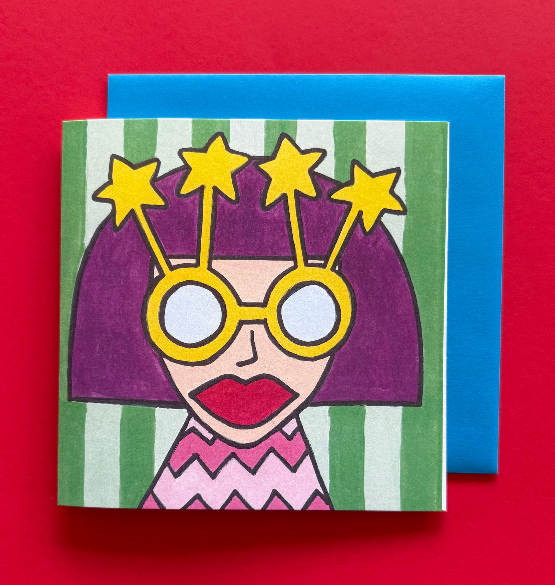 paired with colored envelope, zazaboom sticker and easel back to display your new artwork